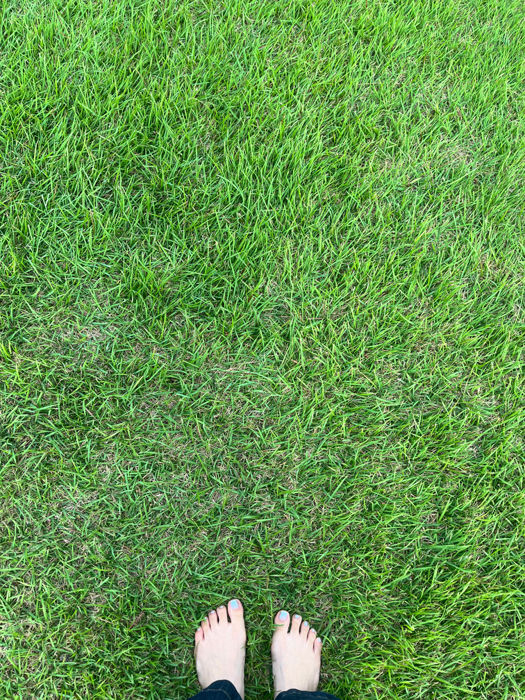 裸足になって、なんと約半年ぶりに芝生の上を歩きました!